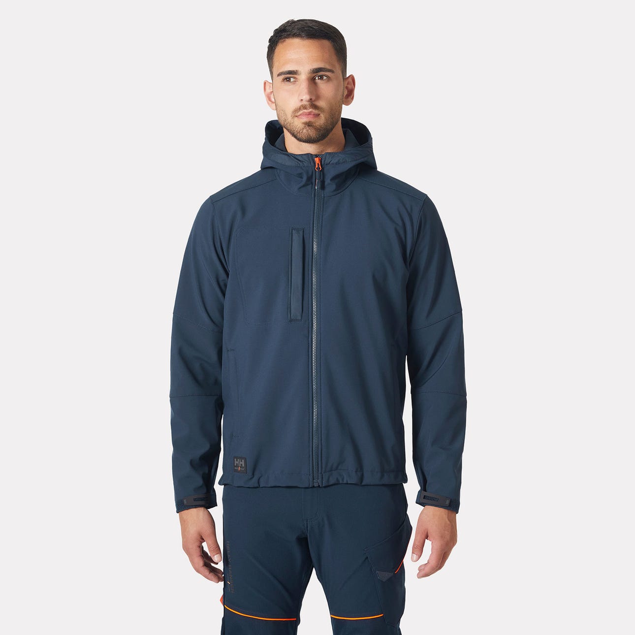 Kensington-softshelljackan med huva är ett utmärkt val för hantverkare som uppskattar enkelhet och användbarhet. Den höga kragen har borstad fleece på insidan och ryggen är förlängd för förbättrad komfort. Den har flera bekvämt placerade fickor med YKK®-dragkedja och bröstfickan har hål för hörlurssladd, vilket minskar onödigt trassel.
